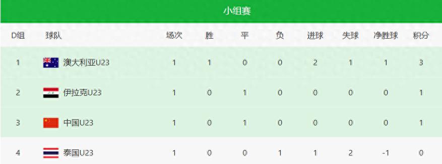 首轮比赛,澳大利亚队2:1击败泰国队坐稳D小组头名之位;而U23国足却0:0战平伊拉克队,排名小组第三。从目前的小组积分形来看,国足本场对阵澳大利亚最好能够取胜,否则,最后一场对阵泰国队,恐怕就会彻底失去出线的主动权。