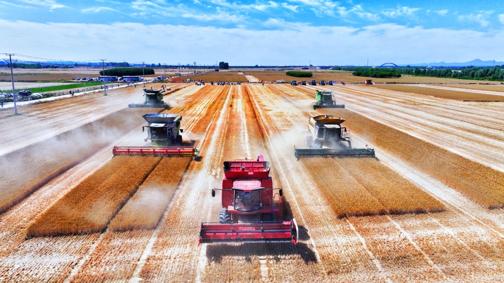 五年来,新区集成推广良田、良种、良机、良法、良制“五良融合”,打造万亩绿色增粮先行区,累计新改建高标准农田14.85万亩,其中新建9.6万亩、改造提升5.25万亩,一系列现代化农业设施的建成投用,为粮食丰产提供了坚实硬件保障。2024年,新区粮食播种面积达73.12万亩,全年粮食产量26.79万吨;2025年夏粮生产再传捷报,实现播种面积、单产、总产量“三增”,其中播种面积35.79万亩、同比增长0.2%,单产354.1公斤/亩、同比增长0.7%,总产量12.67万吨、同比增长0.9%,用扎实的数据诠释了“藏粮于地、藏粮于技”的深刻内涵。