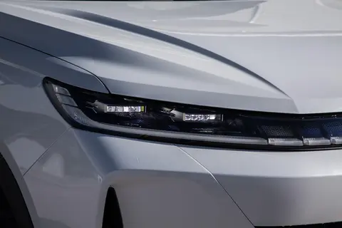 外观设计摆脱传统燃油SUV的沉闷感,采用年轻化设计语言。扁平化前脸搭配大尺寸进气格栅,营造出饱满的视觉效果;贯穿式LED日行灯与可发光的“HAVAL”车标相连,夜间点亮后辨识度提升,质感出众。溜背式车顶线条从车头延伸至车尾,搭配20寸轮毂,让整车兼具运动感与力量感,避免了中型SUV常见的臃肿感。车身颜色选择丰富,除经典的白、黑、灰外,还有多款时尚配色可供挑选,适配不同消费者的审美偏好,车漆光泽度与细腻度出色,细节处体现工艺品质。