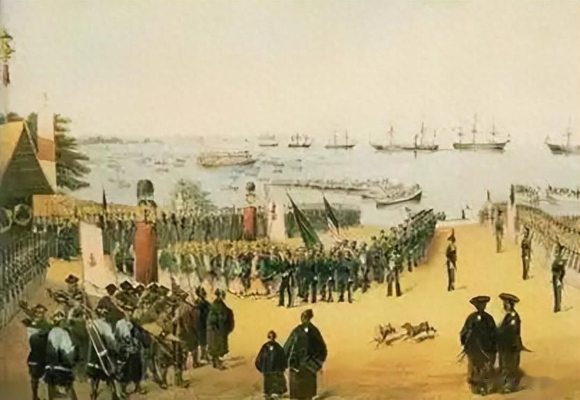 日本幕府初拒接国书,以“需请示天皇”为由拖延。佩里以武力威慑,派测量队深入江户湾示威。1854年3月31日,双方签订《日美亲善条约》(又称《神奈川条约》),核心条款包括:开放下田、箱馆(今函馆)两港,供美国船只补给、避难;允许美国在下田设立领事馆;保障遇难美国船员安全与待遇;给予美国最惠国待遇;该条约是日本历史上第一个近代国际条约,标志着持续214年的锁国体制正式瓦解。