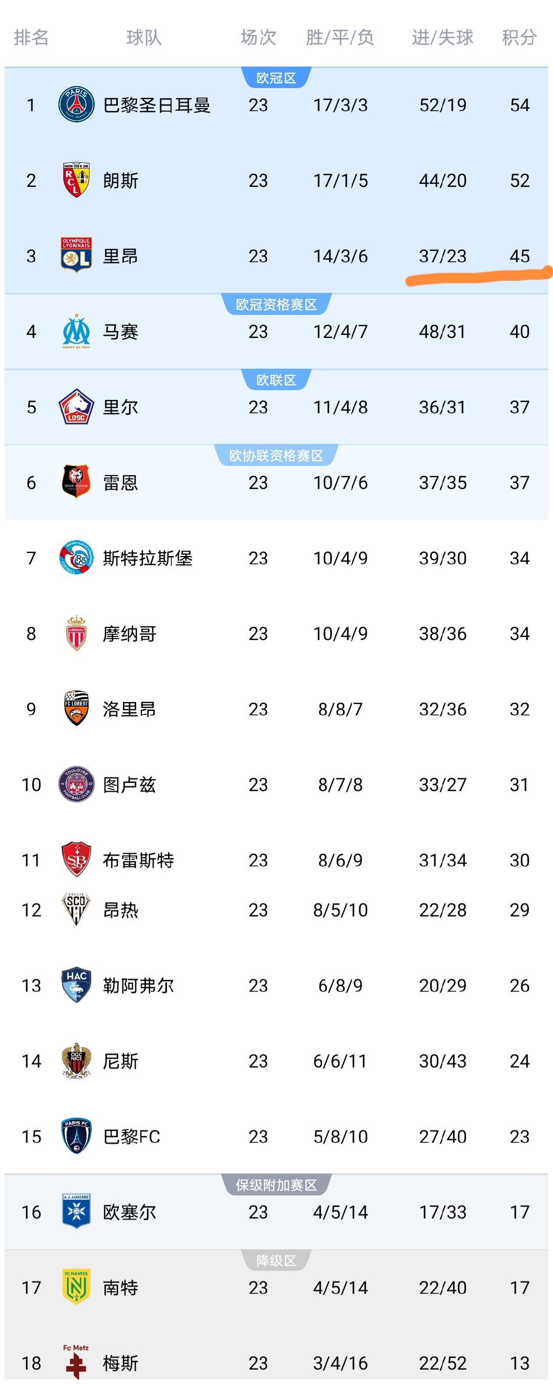 今天凌晨,法甲第23轮结束了5场较量,南特、里尔、尼斯等队出战,这5场较量之后,法甲积分榜发生变化,我们来看看。