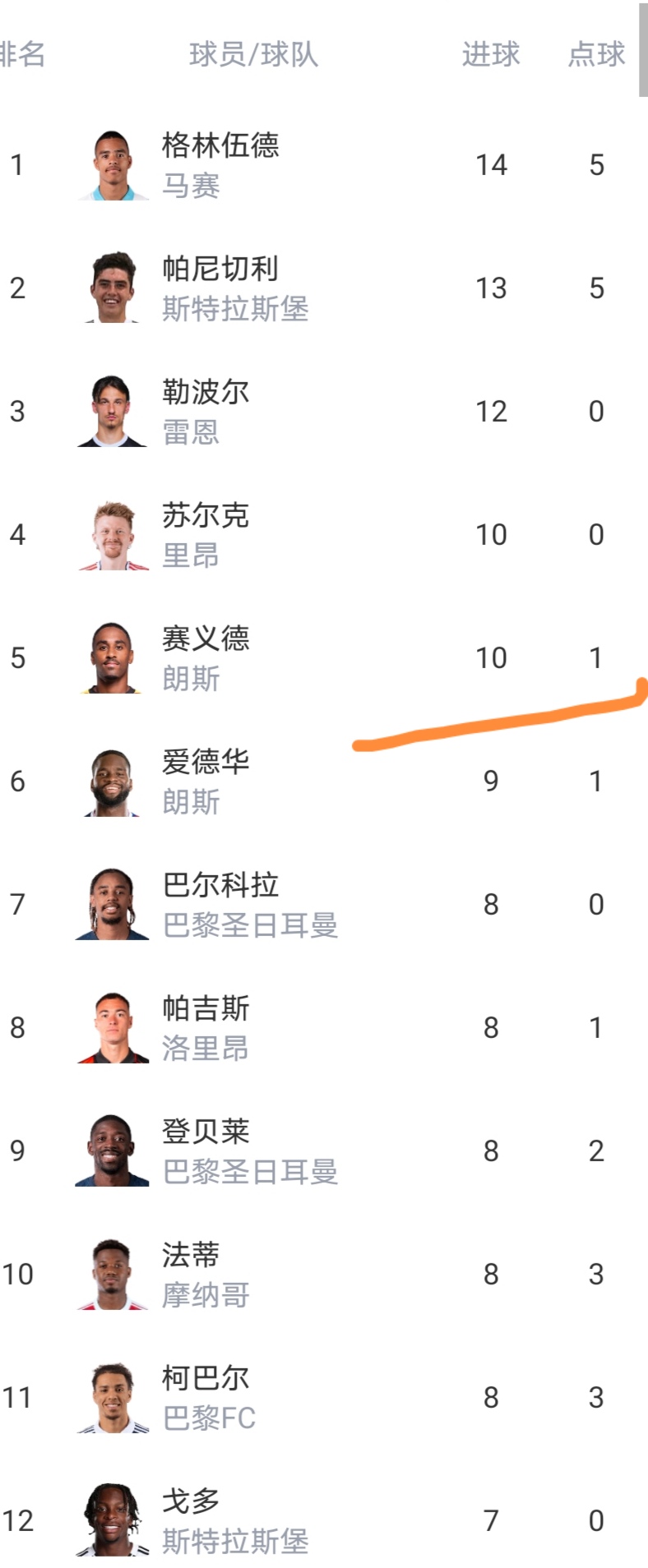 射手榜仅5人进球上双,法甲金靴争夺白热化,格林伍德领先优势不大了。
