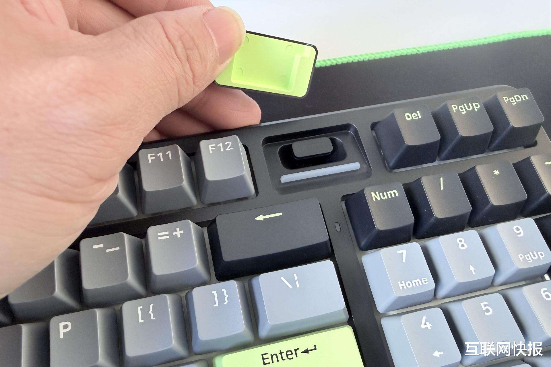 最戳我的是右侧的 “时空幻境仓”,既能收纳 2.4G 接收器,避免丢失,还能实时显示键盘电量,直观又实用,桌面整洁度瞬间提升。
