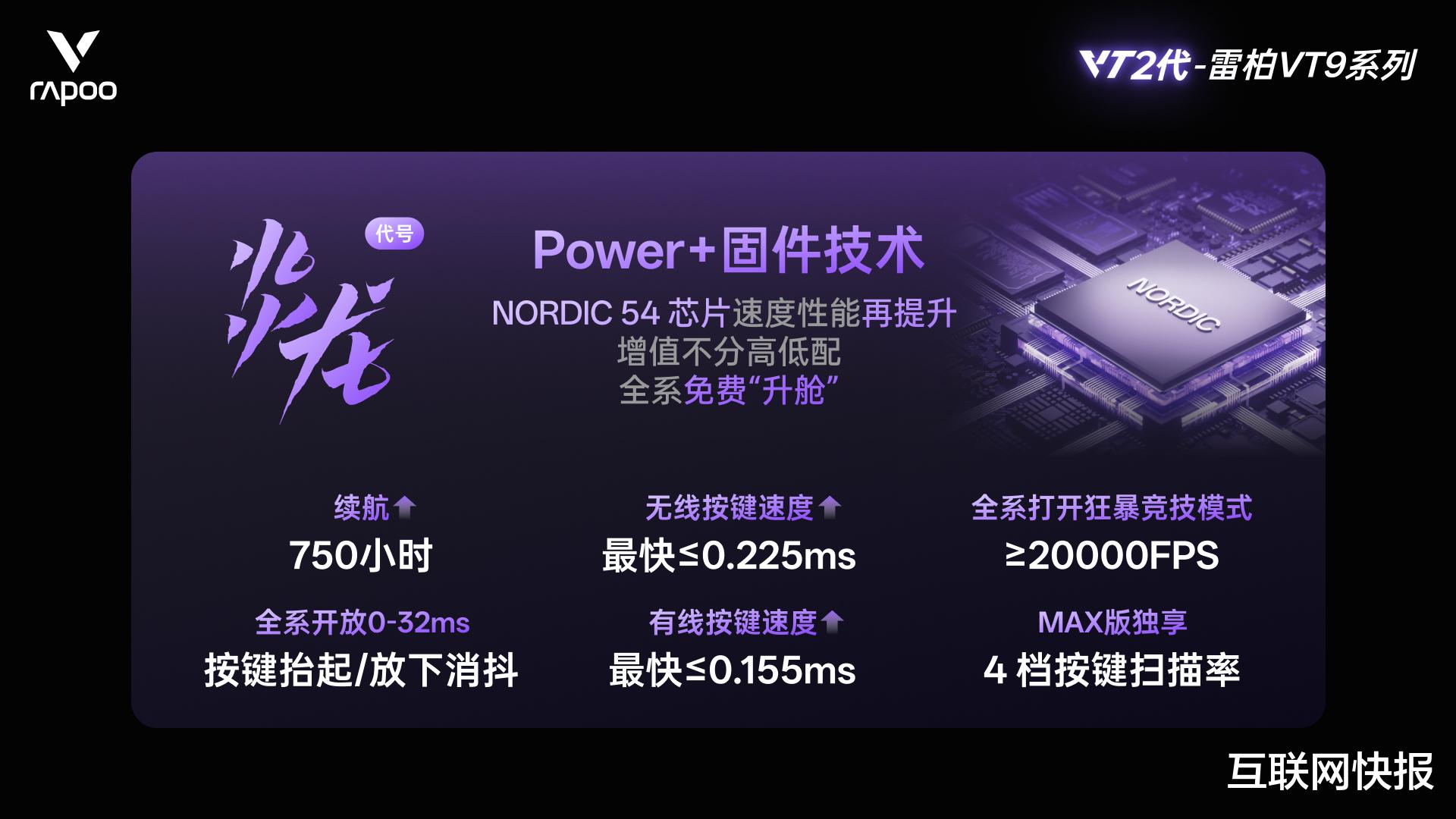 如果说续航是 VT9MAX 的亮点,那核心性能就是它的王牌。全球首发的 Nordic 54 系列芯片,搭配 V+Wireless2.0 无线电竞算法和原相 3950 Ultimate 光学引擎,直接把无线鼠标的响应速度拉到顶。