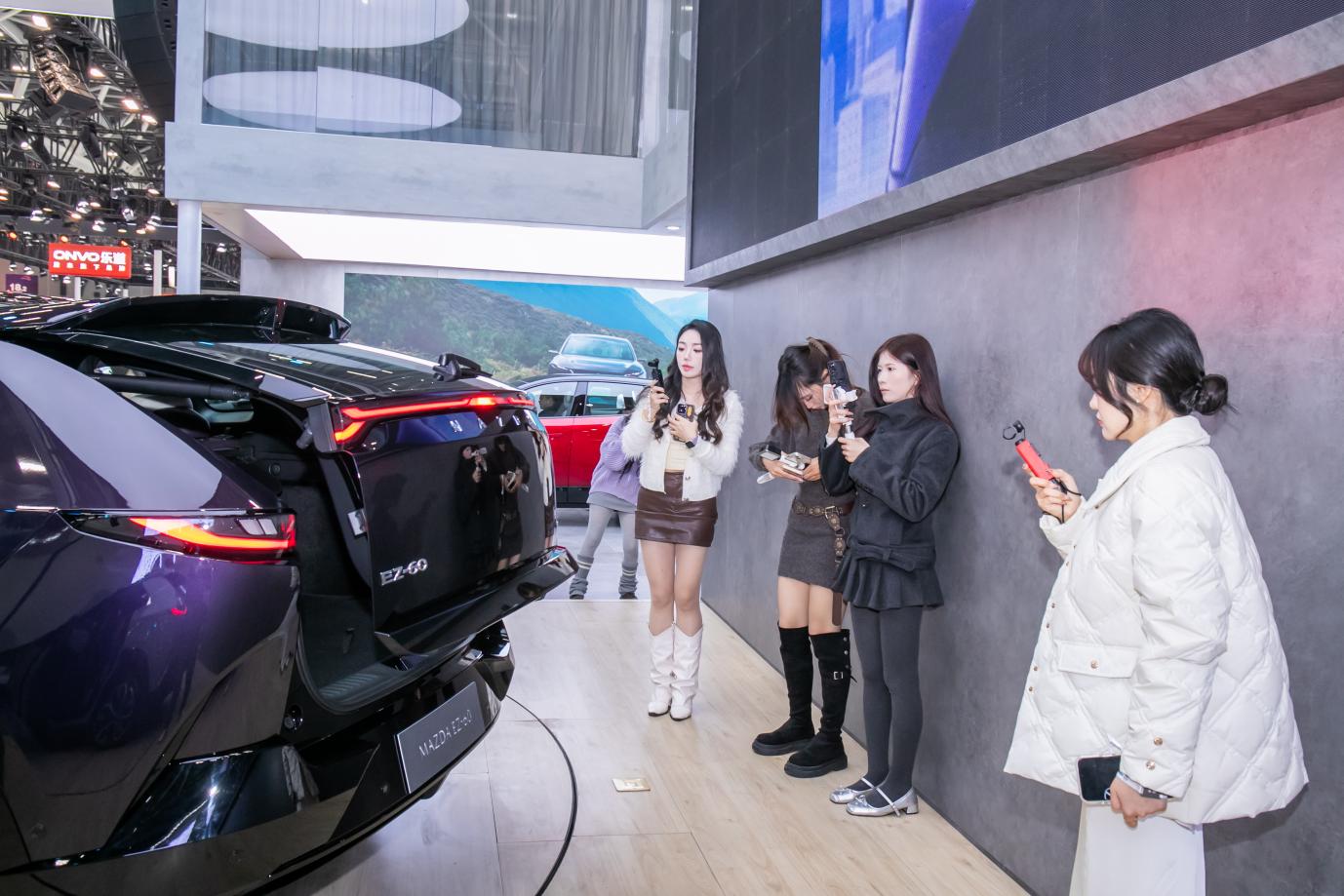 先看空间与使用效率的考量。日产NX8把“得房率”摆在显眼位置,83%的数据背后,是2917mm轴距与1934mm有效座舱的布局取舍,后排膝部空间达到760mm,后备箱容积为773L,这些数字会直接影响周末出行的松弛感。它的“客厅化”环抱布局与AI零压云毯座椅2.0,核心在于智能调节后让乘员在长途中更轻松。马自达EZ-60则通过车身宽度1935mm与2902mm轴距,强化横向乘坐舒展度,提出“4间房2AI”的空间想象,前排座椅放倒可形成两张1.8m大床,这种场景化表达把露营与临时休憩变得自然,也把家用的边界延展到周末的野地。