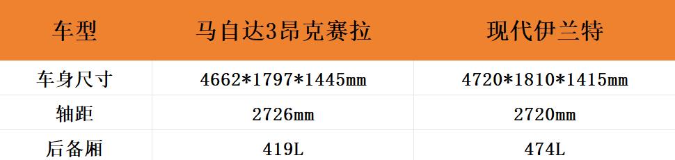 小编的身高是1米78,坐进马自达3昂克赛拉,后排腿部空间只有1拳2指,而现代伊兰特的腿部空间则是1拳4指,而且,相比较而言马自达3昂克赛拉的后排中央地板的凸起也要来的更高,整体乘坐体验打了折扣。此外,马自达3昂克赛拉的后备厢容积也只有419L,这边现代伊兰特的后备厢容积是474L。