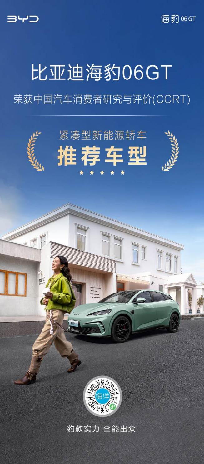 近日,中汽中心汽车测评管理中心公布了CCRT(中国汽车消费者研究与评价)的最新评价结果。比亚迪海豹06GT从10款热门车型中脱颖而出,获评“CCRT选车指南推荐车型”。这一荣誉不仅是对其产品价值的权威背书,也意味着其全能实力获得了专业机构与消费者的双重认可。