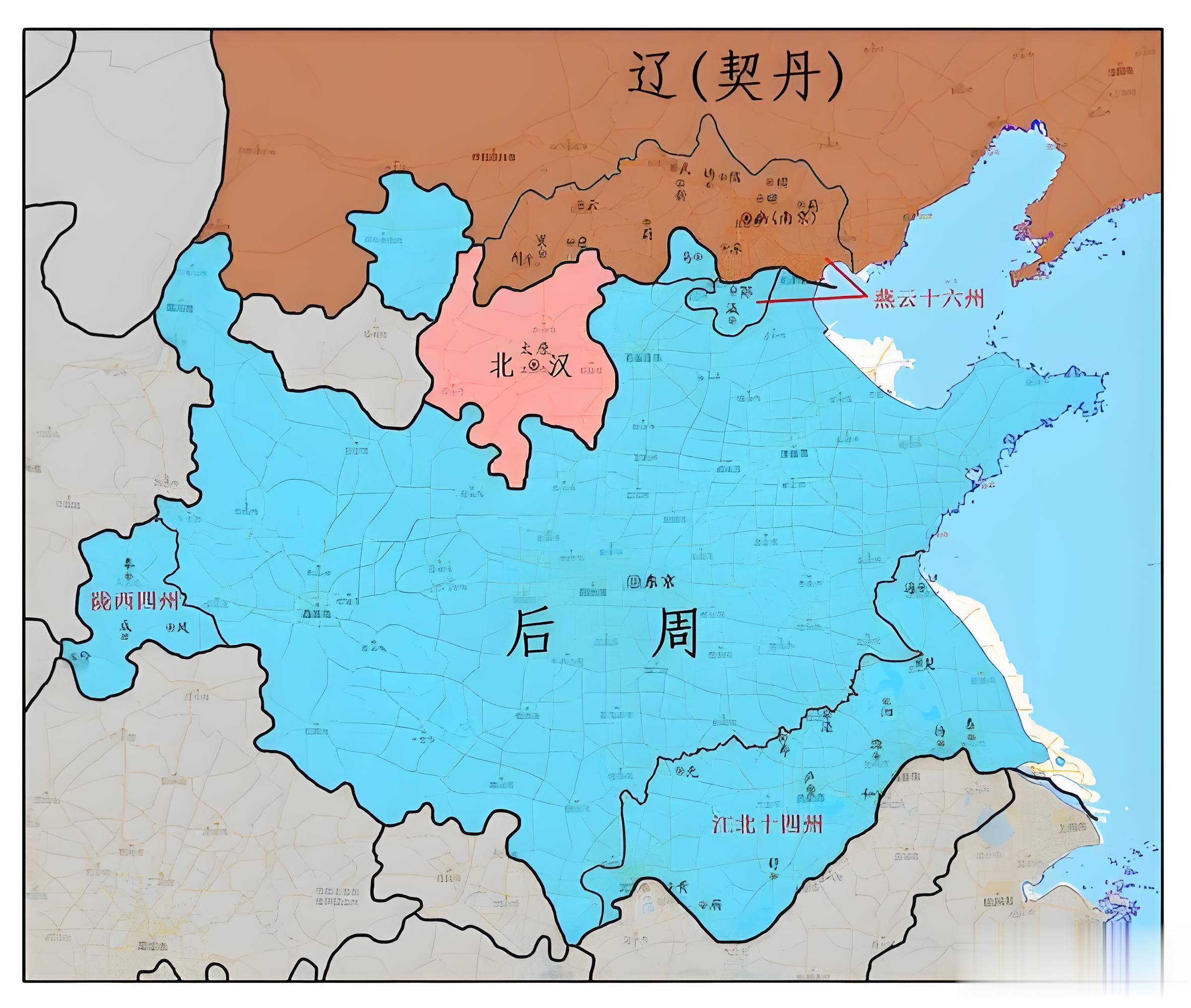 柴荣也知道自从石敬瑭丢失燕云十六州之后,中原再无长城等天然的屏障,也失去了古代骑兵需要的产马胜地。于是,在显德六年,柴荣就下定北伐契丹,42天连收三关(瓦桥、益津、淤口)三州(瀛、莫、易),兵锋直指幽州,距离收复幽云十六州仅一步之遥——这是五代以来中原对契丹最辉煌的胜利。