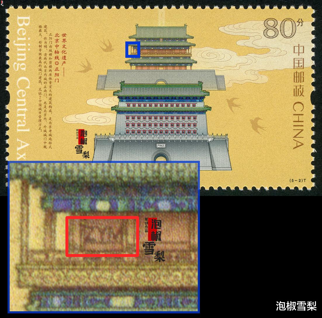 此次长卷版暗记和套票位置一致,均为每枚票名的拼音首字母,此处以“正阳门”为例,其它暗记可参考2025年7月28日我所发的套票评测文章。