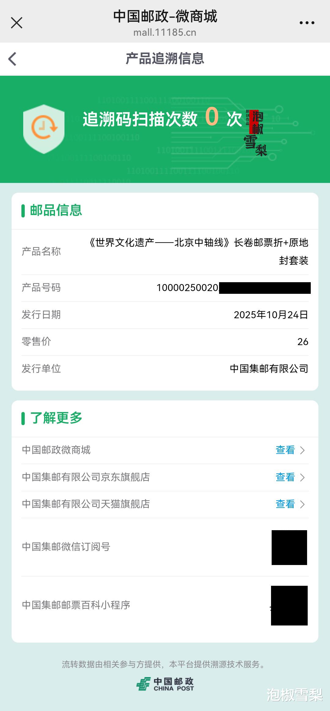 此二维码在今年佳邮评选纪念邮折上也曾出现过,溯源系统原为NFC邮票独有,现已多次采用二维码的形式进行,不知会不会成为总公司邮品未来的标配。