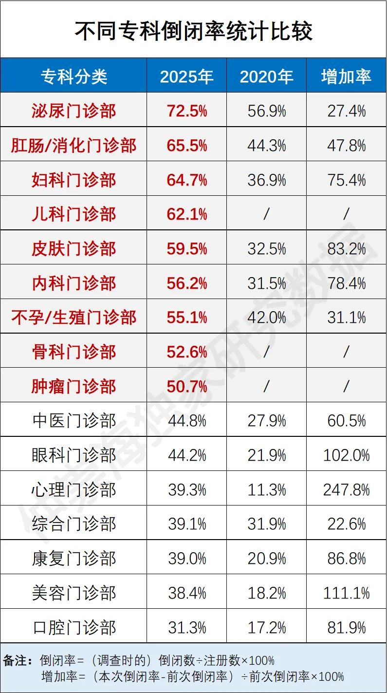 在调查的 16 个专科分类中,倒闭率超过 50% 的居然有 9 个,堪称 “重灾区”,分别是:
