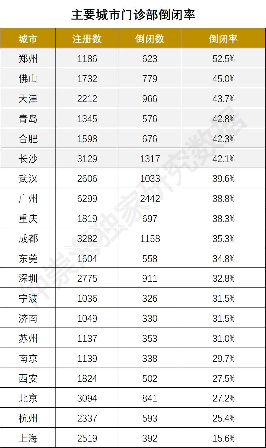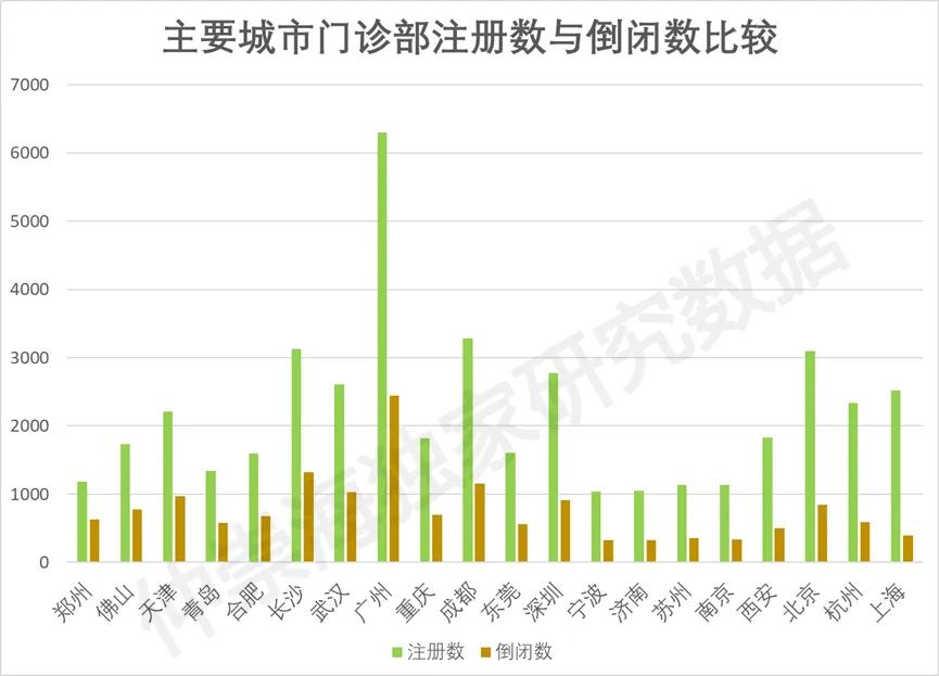 • 口腔门诊部、中医门诊部倒闭数均突破 10000 家,成为倒闭规模最大的两个专科;