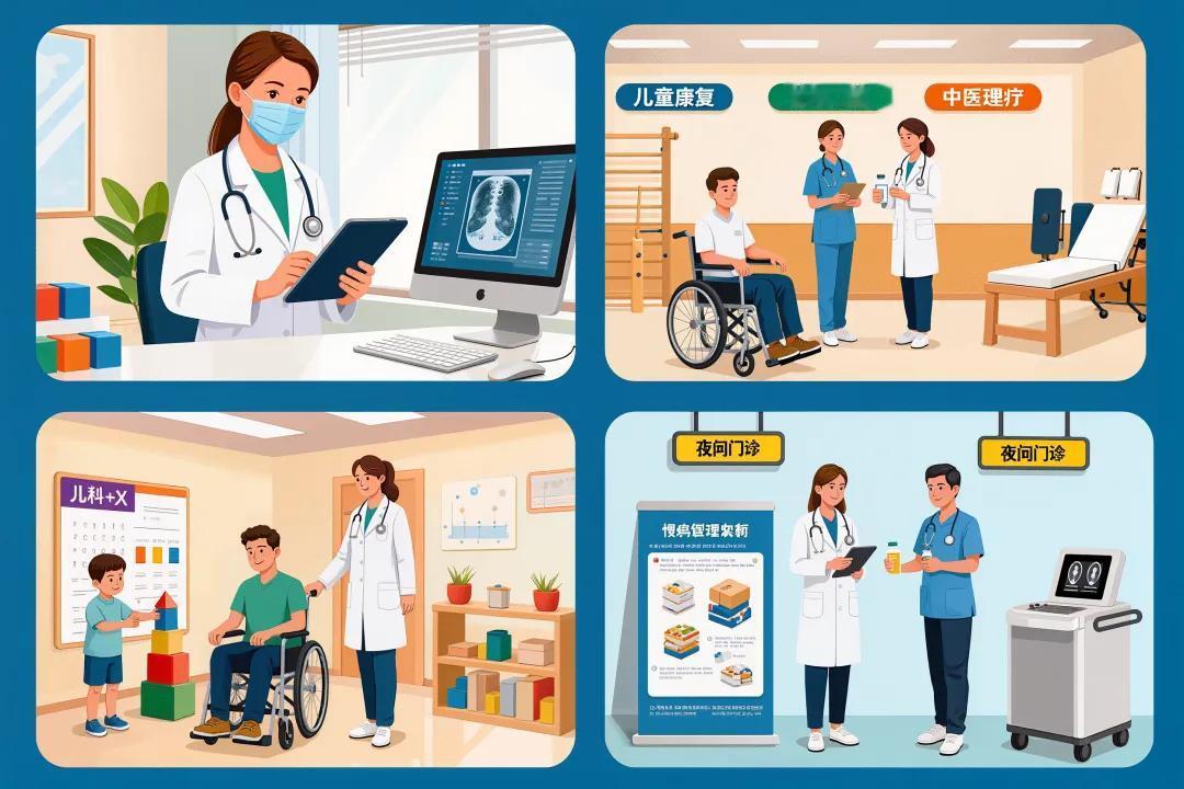 2.专科覆盖:在 2020 年 13 类专科(含 “综合”)基础上,新增儿科、骨科、肿瘤 3 类,覆盖 95% 以上注册门诊部;