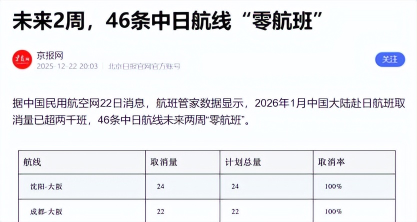 北京日报《未来2周,46条中日航线“零航班”》