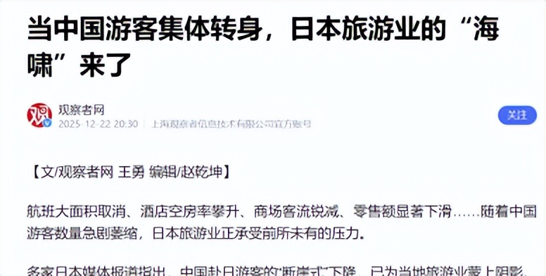 观察者网《当中国游客集体转身,日本旅游业的“海啸”来了》
