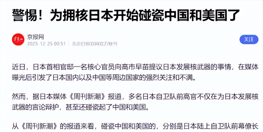但其实与其说我国的抵制越演越烈,不如说高市早苗政府的军国主义复起之火越来越烈了,最近的“拥核”言论也在日本掀起了惊涛骇浪。