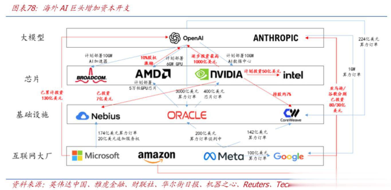 Meta则将2025年整体资本支出预期上调至660–720亿美元,其中AI投入延续2024年270亿美元的高增长态势。