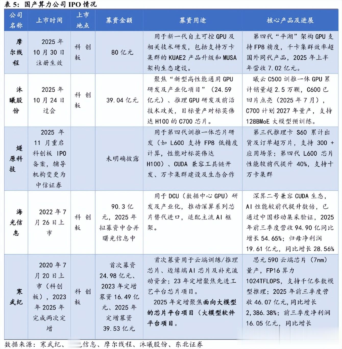 资本端,摩尔线程、沐曦股份、壁仞科技、天数智芯等国产GPU企业正加速冲刺科创板或港股上市,融资能力与生态建设同步提速。