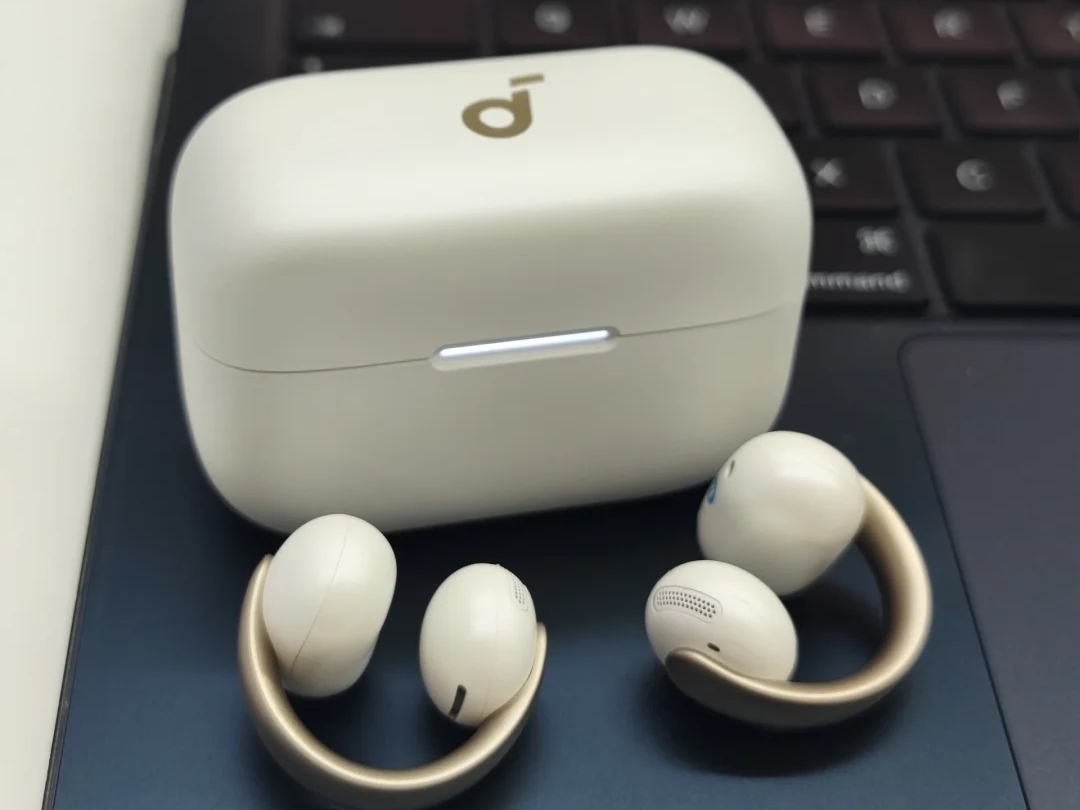 佩戴体验更是让我满意,单耳仅 5g 的重量轻到几乎让人忽略它的存在,非对称流线型设计完美贴合耳廓轮廓,贴合度极高,就算佩戴一整天,耳背也不会有任何压迫感。配置上,蓝牙 5.4 芯片响应速度快,开盖瞬间就能完成设备配对,连接稳定性极强,使用过程中不会出现音画不同步、断连等问题,延迟控制也十分到位;8 小时单次续航 + 32 小时总续航,完全能满足日常全天候的使用需求;IPX5 防水等级可应对日常出汗、小雨等各类场景,整体用下来顺手又省心。