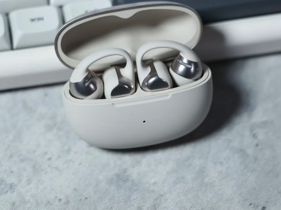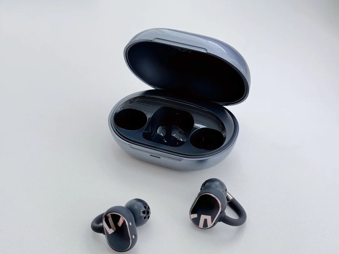 佩戴上,虽然单耳 7g的重量不算特别轻,但耳夹处的弧形软梁采用亲肤柔软的材质,夹力把控适中,不会把耳朵夹得发紧,即便连续佩戴数小时,也不会有硌耳、酸胀的感觉,佩戴体验十分友好。通话是这款耳机的一大亮点,六个麦克风组成的降噪阵列,能有效过滤环境中的各类杂音,不用特意寻找安静的角落,对经常在外办公的用户来说格外实用。