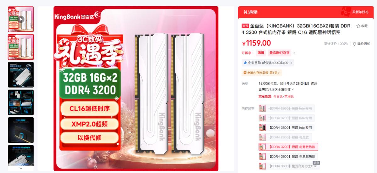 虽说这波内存的涨价就是从DDR4开始的,其涨幅也不低,但是相对于DDR5夸张的价格,DDR4的价格还是要便宜不少:DDR4 3200 CL16 32GB套装当前售价为1149元,比M-Die颗粒的DDR5 6000 32GB套装便宜了1000多元,价格优势还是非常明显。另外B760主板的D4和D5版本之间也存在着100元的价差。