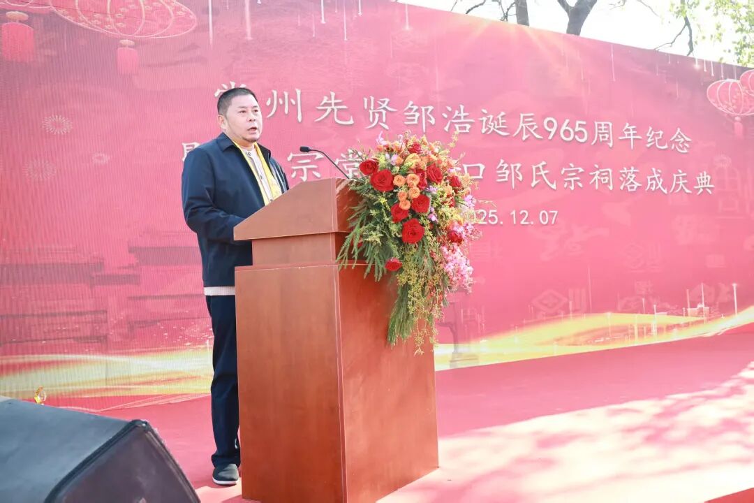 2025年12月7日上午,常州市天宁区郑陆镇宁河村邹氏宗祠南广场鼓乐喧天、彩烟腾空。在庄严热烈的氛围中,常州先贤邹浩诞辰965周年纪念活动暨显忠堂三河口支邹氏宗祠落成庆典隆重举行。数百名邹氏宗亲、地方文化学者及各界嘉宾齐聚一堂,共同见证这座凝聚家族血脉与历史记忆的精神殿堂焕彩重光。
