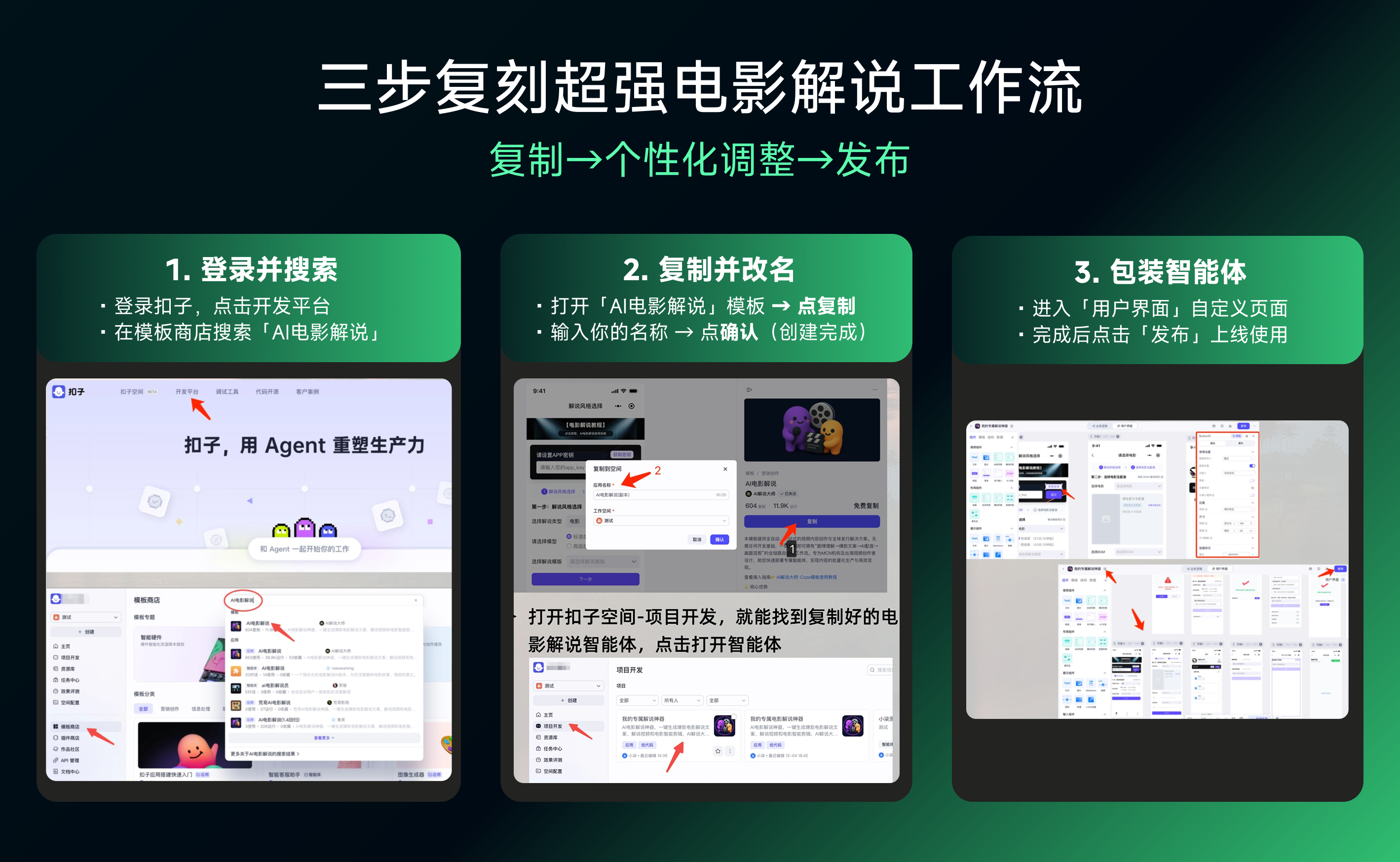 五、如何获取并部署 AI电影解说 Coze 模板?第一步:获取官方 Coze 模板搜索coze模板:AI电影解说,可直接获取:一键复制