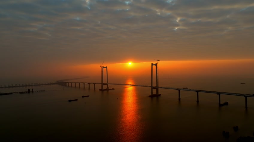 广东中山_地标桥梁_日出航拍_深中通道 4K高清视频素材截图(来源:16bi9网 正版商用视频素材网)