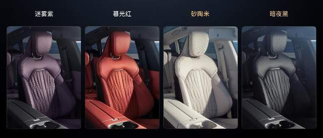 首先,在色彩方面,内饰共有四种颜色选择,其中两款延续经典色「暮光红」和「迷雾紫」,同时新增「暗夜黑」、「砂陶米」两款首发新色。