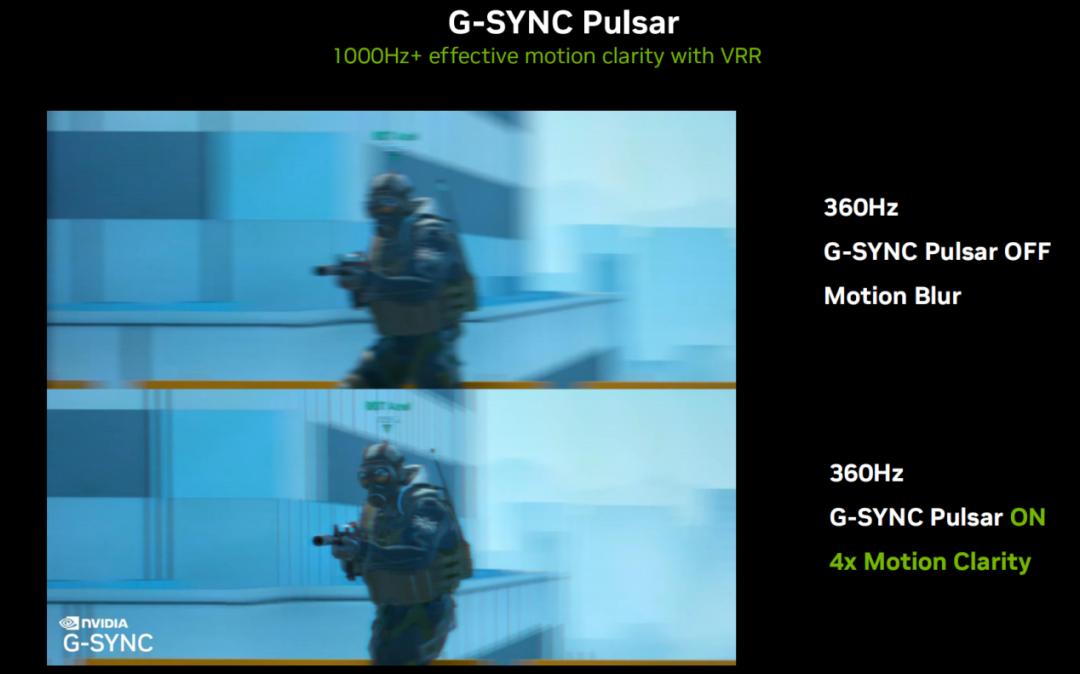 G-SYNC Pulsar是一剂“清晰良方”,特配的滚动背光技术驱散画面拖影的阴霾,相较于传统同步技术实现了4倍的动态清晰度提升。