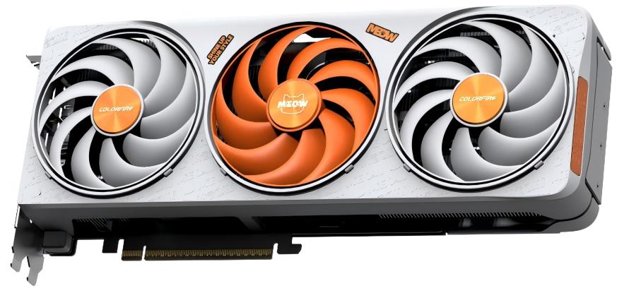 COLORFIRE MEOW RTX 50系列相对比较另类,这系列产品延续了猫的元素,以IP形象橘宝为设计灵感。橘宝所对应的产品配色“橘影橙”设计灵感源于“橘子猫”,常见于影视作品以及现实生活中,白橘的清新配色深受玩家的欢迎,在RTX 40系列当中也收获到了玩家的一致好评。让玩家享受到“电子吸猫”的乐趣。