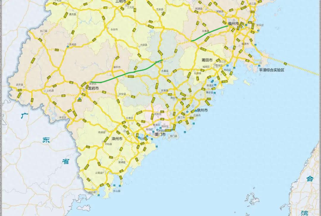 图中绿色线路为福州至永泰高速和德化至龙岩高速