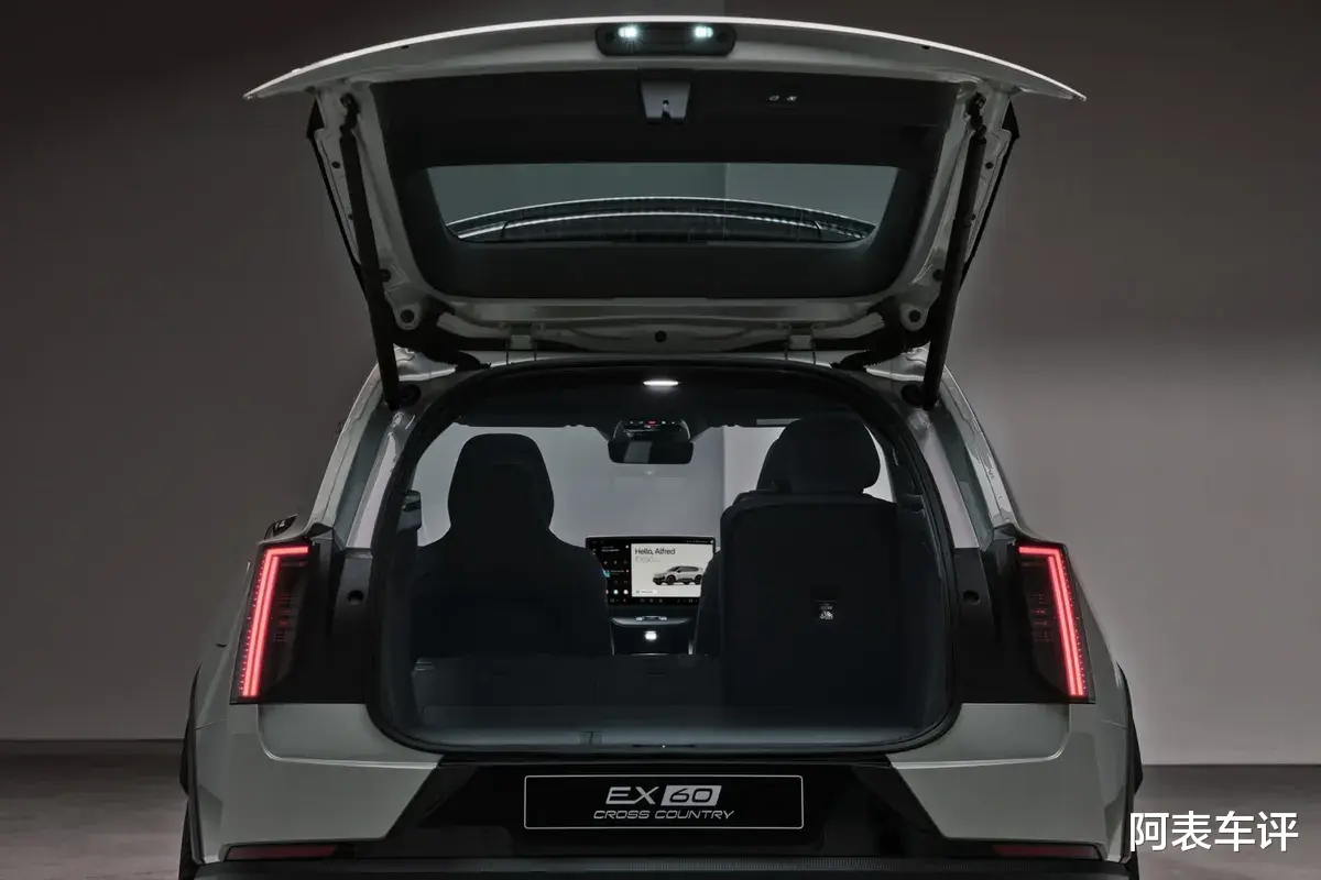 同时沃尔沃还为其推出了EX60 Cross Country版本,该版本是沃尔沃经典的越野化衍生款,此前品牌也为EX30打造过同系列车型,本次EX60 Cross Country在基础版之上,配备了专属造型轮辋、Frost Green专属车身颜色,车身前后的拉丝不锈钢防擦护板和加宽轮拱强化了越野气质,前后保险杠与D柱的专属标识也提升了辨识度,离地间隙相较基础版增加20毫米,可选的空气悬架还能再升高20毫米,让车辆的全路况适配性得到提升,兼顾家用与轻度户外需求。