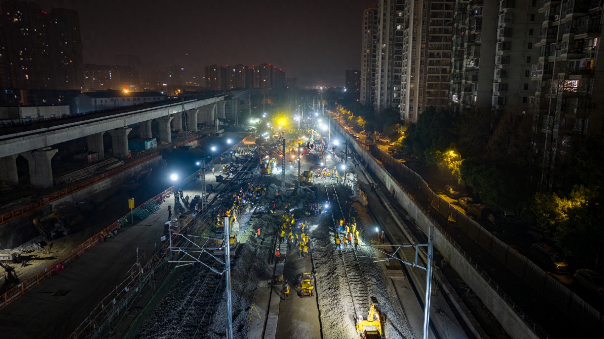 据中铁八局成都车站扩能改造项目经理吴朝旭介绍,此次拨接施工时间紧、任务重、技术复杂、安全风险高,涉及工务、电务、供电多个专业立体交叉施工,需要实现枢纽地区铁路正常运输与工程建设的同步推进。面对作业空间受限、天窗时间短暂等多重挑战,项目团队提前4个天窗作业时间提前准备,在轨排模块化预拼装中采用粘接式无孔夹具创新工艺,既提高了铁路轨道精度、轨道耐久性,还降低了轨道损伤,为后续运维起到了良好的作用。同时,在驳接施工中采用“沙盘推演”“模块化预拼装+分段突击”施工模式、“预铺轨排横移+精准拨接”的工艺,将原来需要5小时的作业时间压缩至了3小时,施工效率显著提升。