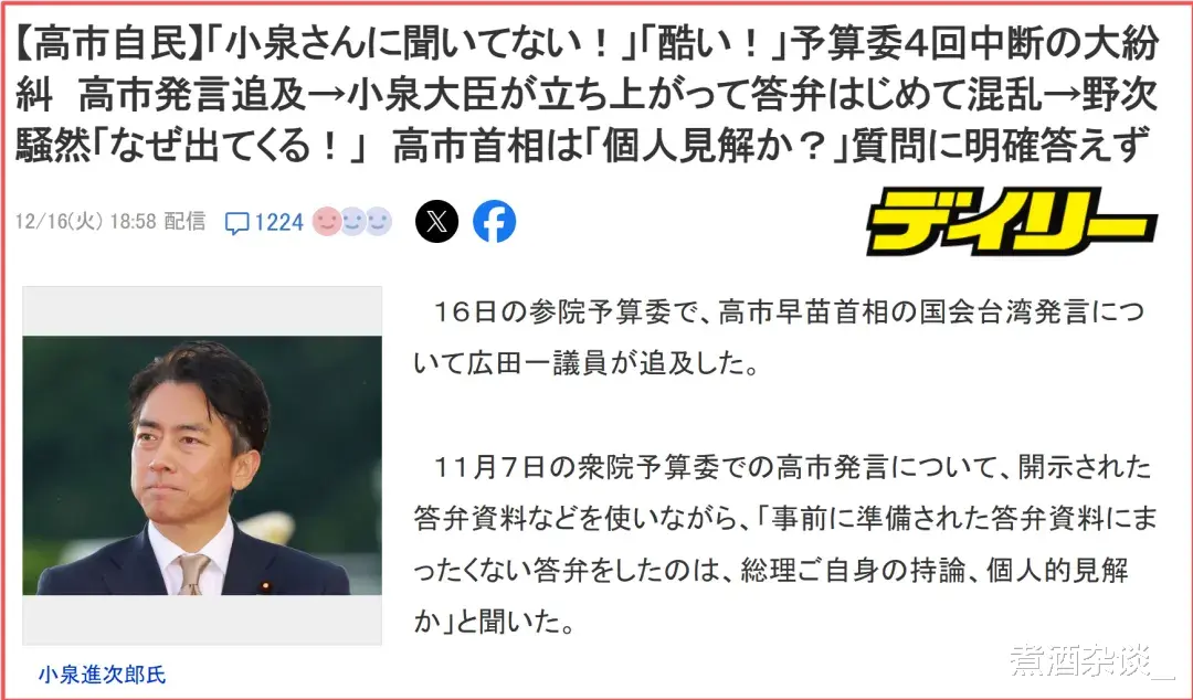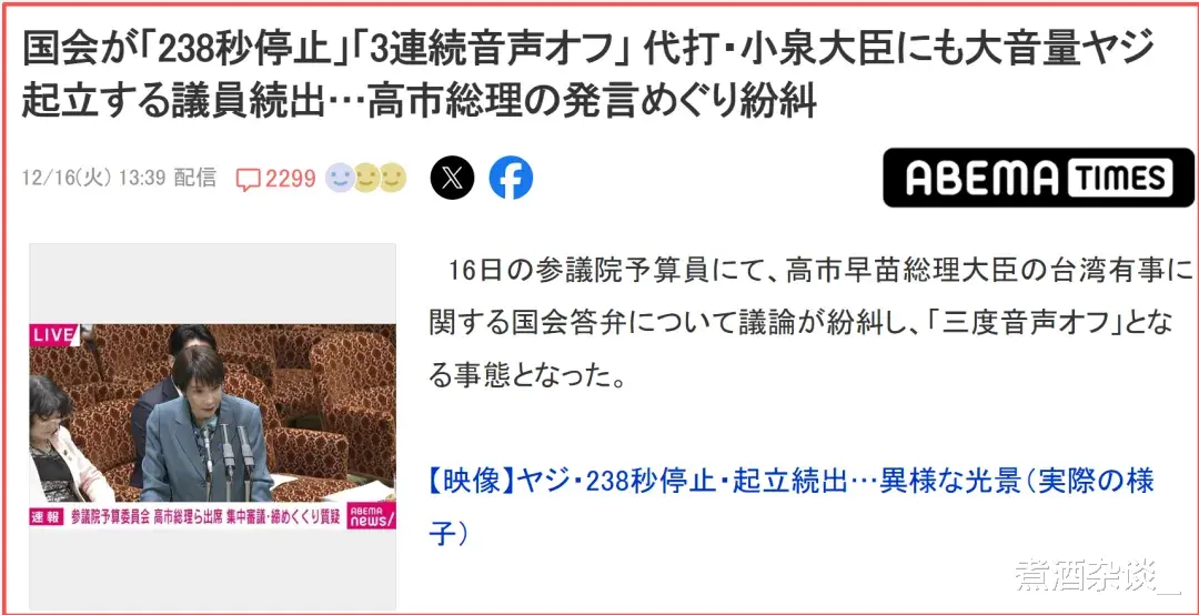 1.4万的高赞留言说:议员没有谦逊吗?在应该讨论的国会上,感情用事的发言让人看不下去。请主持的议长,务必根据周围的形势导入判断强制退出、在家禁闭。在野党里也有很棒的议员,但有一部分很不堪入目。