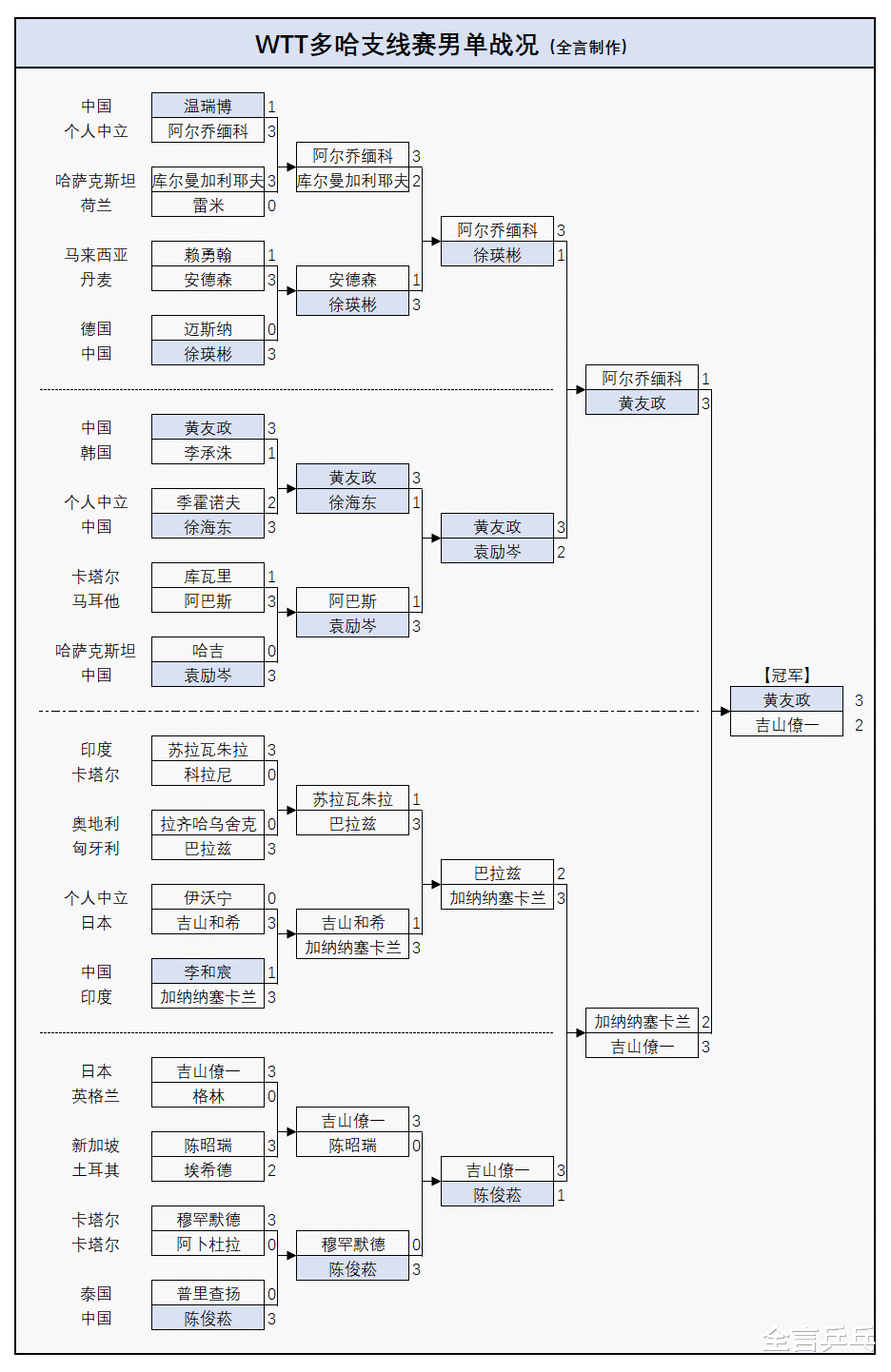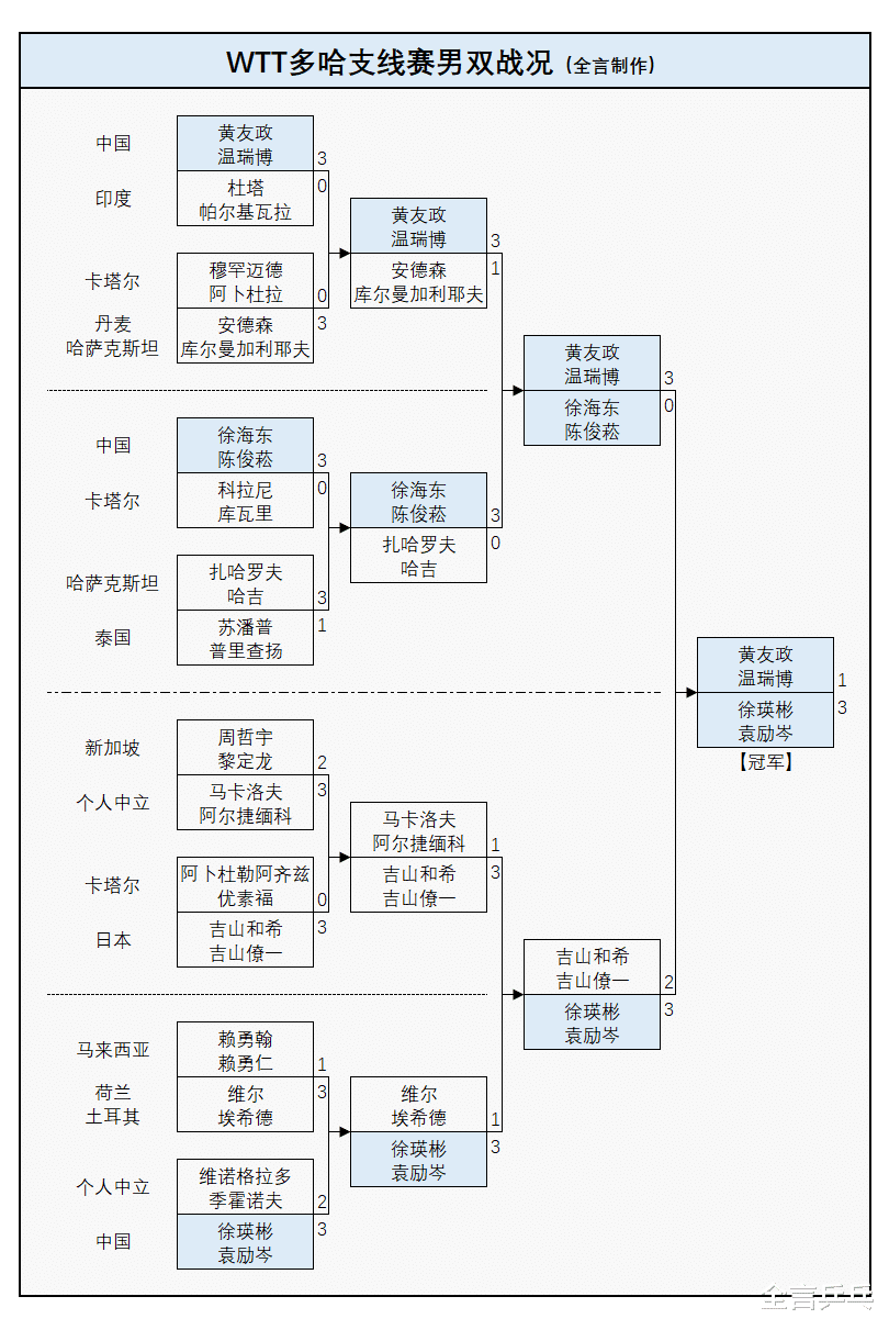 2026年2月1日凌晨,乒乓球WTT多哈支线赛落下帷幕,国乒小将黄友政、杨屹韵在最后的单打较量中连续3-2险胜日韩选手登顶,此外男双、女双冠亚军均被中国队组合包揽,唯有混双再次无缘登顶,新年至今连续三次国际比赛均错失冠军,详细战况请看下文。