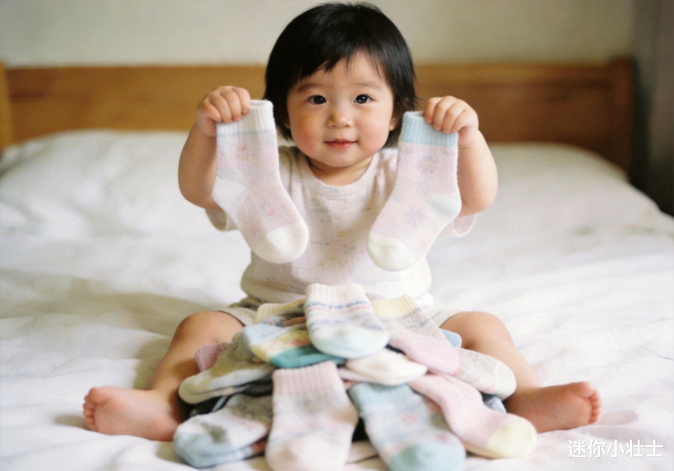 玩法:洗好的袜子晾干后,和宝宝一起把袜子卷成团,然后打乱。让宝宝找出“两只一样的袜子”配对。