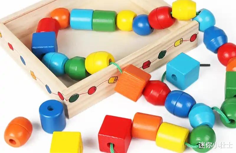 玩法:准备彩色木珠和绳子,和宝宝比赛串珠。你可以说:“我们按‘红-黄-蓝’的顺序串,看谁先串完10颗!”或“把最大的珠子放最前面,最小的放最后面。”