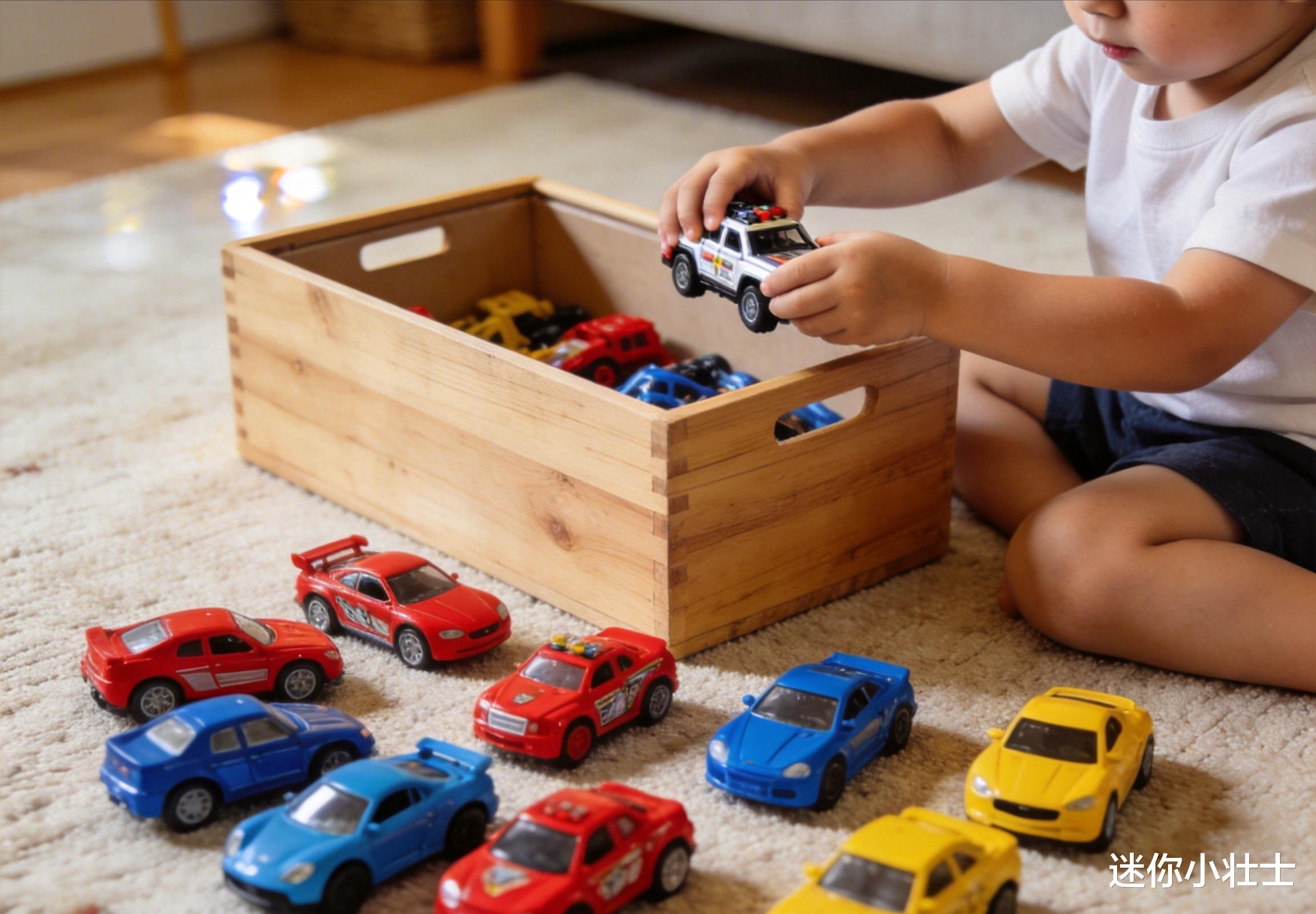玩法:和宝宝一起把玩具倒出来,然后说:“我们来给玩具找家吧!汽车应该回‘停车场’(盒子A),积木回‘积木屋’(盒子B),毛绒玩具回‘小床’(篮子)。”