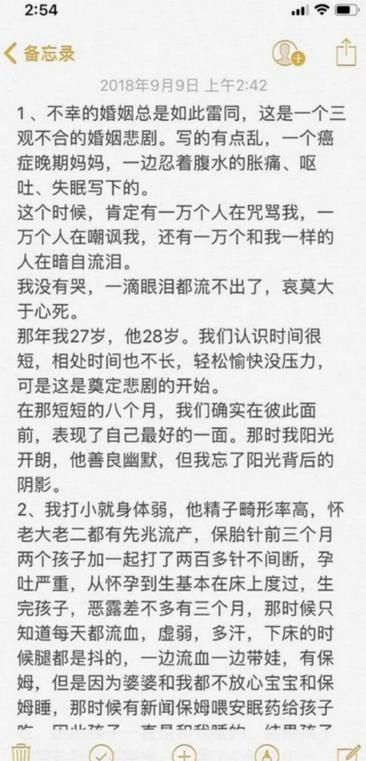 这封遗书,是她对这个世界最后的告别,其中也充斥着对八年豪门婚姻的哭诉。