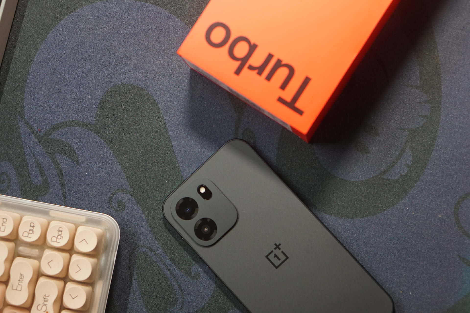 ▲背面的样子,就是一加手机特有的气质,Turbo6V延续了一加一贯的细致做工,实机的质感真的不错,在1500元左右的价位值得称赞,独行黑的配色经典百搭,很显高级感,背面的材质也不容易沾指纹,加分好评。