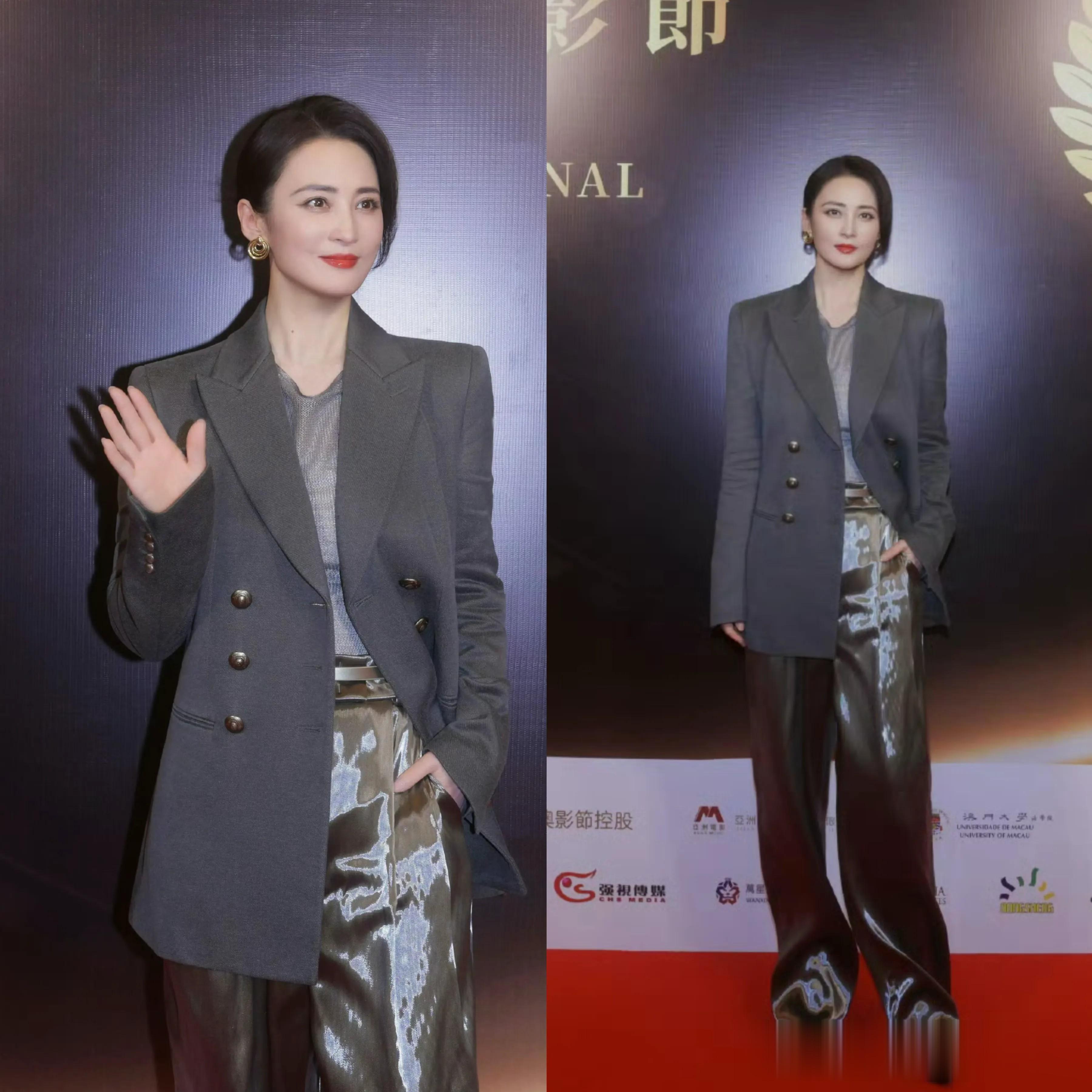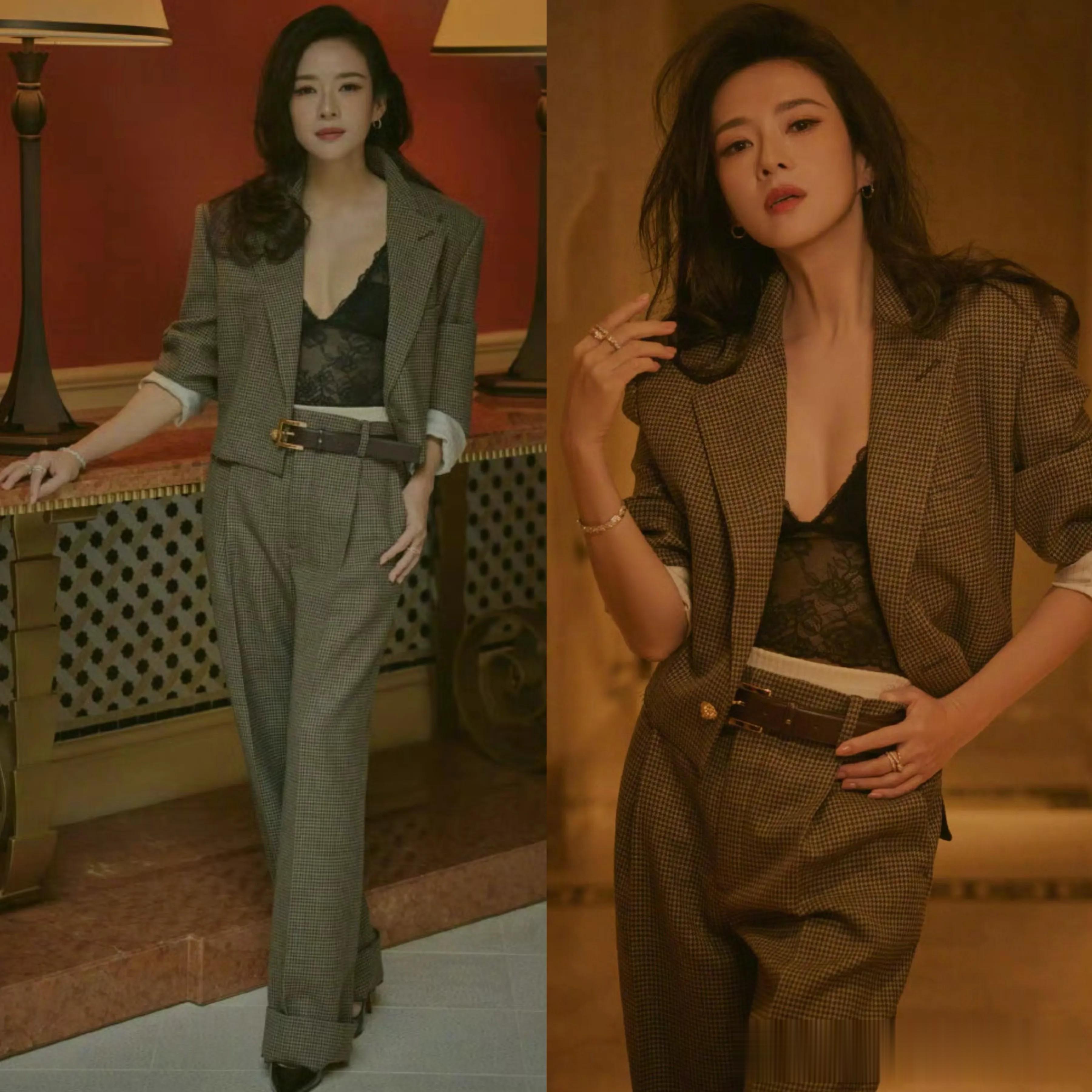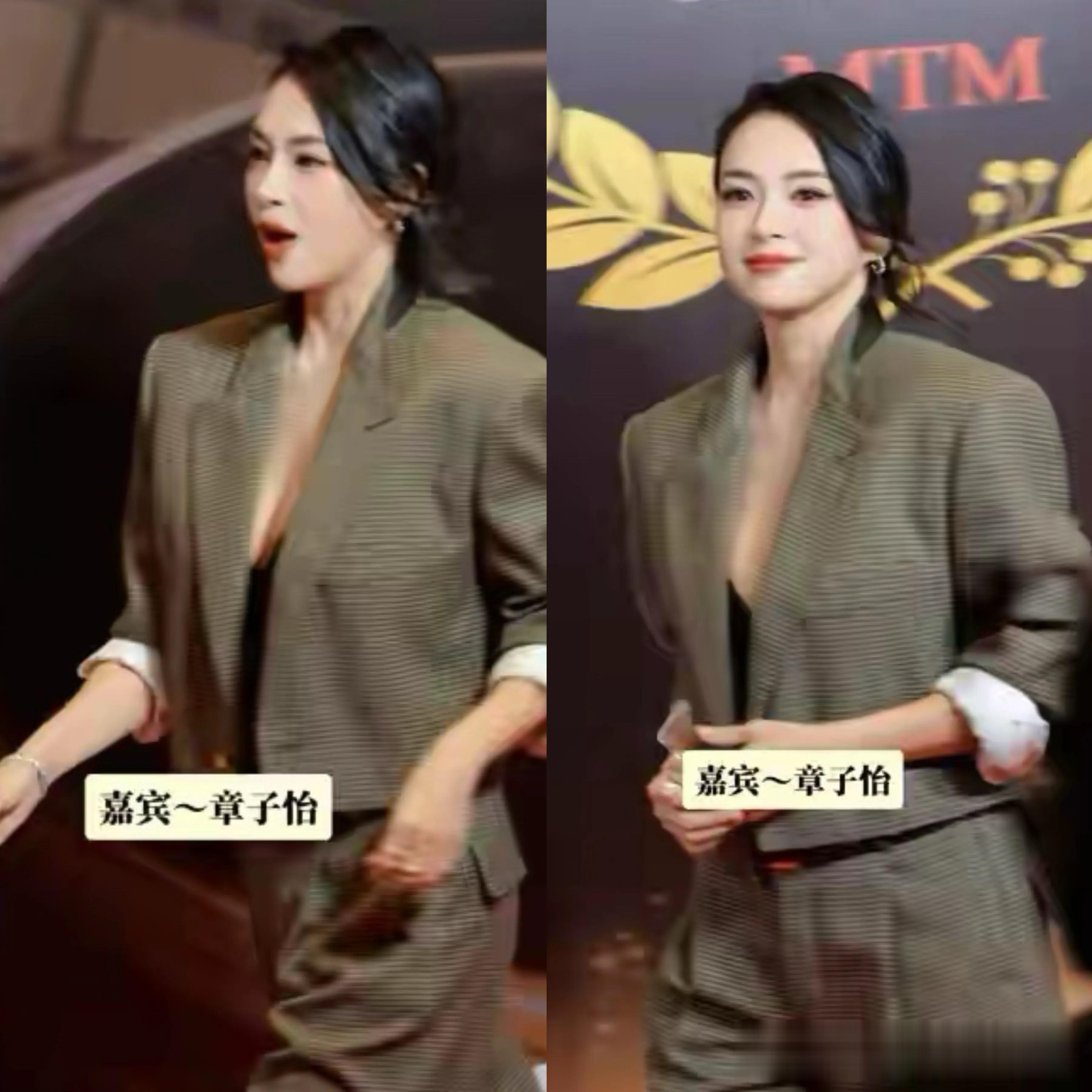 明眼人不难发现,子怡近期瘦了不少,状态相当显年轻,今晚她还搭配了深V蕾丝内搭,让整体造型飒爽中还透露出浓浓的女人味。