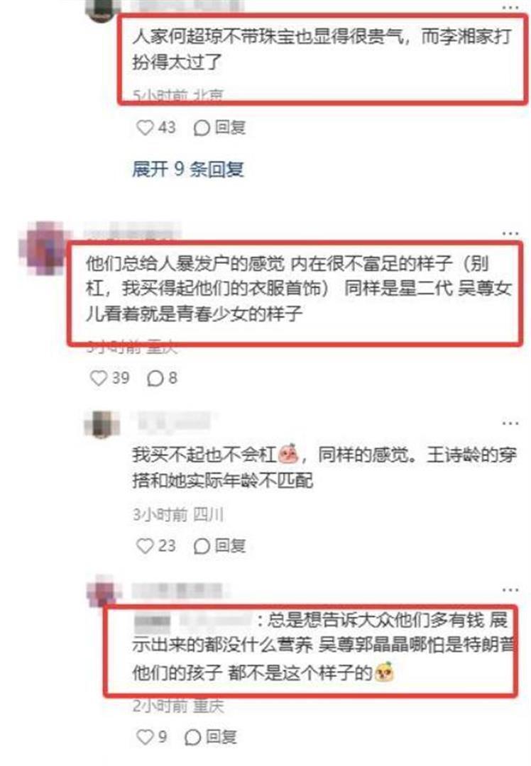反观李湘母女,过于用力的装扮在简约的环境中反而突兀。 尚未成年的王诗龄,在这种以成人商业社交为主的场合中,显得格格不入,被描述为“插不上话”和“尴尬”。 李湘试图将女儿推至前台“见世面”的急切,与周围自然、沉稳的社交氛围产生了裂痕。这一幕被敏锐的媒体捕捉并放大,形成了“野心撞上涵养”的叙事。