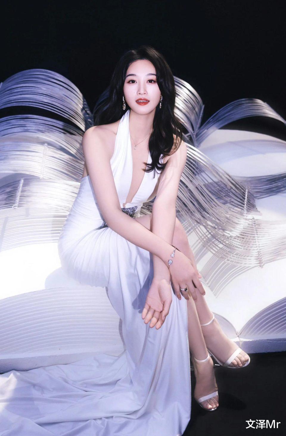 置身于形似展开书卷的白色装置上,蓝盈莹交叠双腿斜坐,仿佛在阅读一本关于时尚的诗集。深V礼服与露趾高跟凉鞋的搭配,让166cm的身材在视觉上延伸出170cm的气场。作为毕业于中央戏剧学院的科班演员,她曾坦言“表演和时尚都是表达自我的语言”,这张照片恰似她用身体语言写就的优雅篇章。