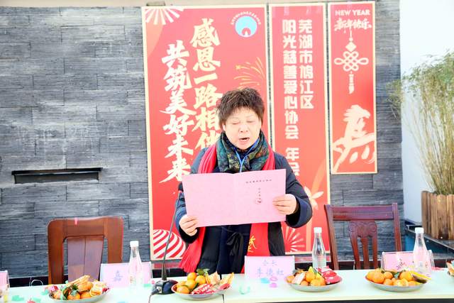 冬日暖阳铺洒皖江大地,慈善暖流涌动鸠兹古城。2025年12月27日,安徽芜湖,以“感恩一路相伴,共筑美好未来”为主题的鸠江区阳光慈善爱心协会年会盛典,在芜湖经开区万春街道杨青社区的鸿海别院生态农庄隆重启幕。近百位领导、嘉宾与协会会员欢聚一堂,共忆慈善征程,共话爱心愿景,在徽风皖韵的田园雅境中,谱写了一曲崇德向善、大爱无疆的动人乐章。