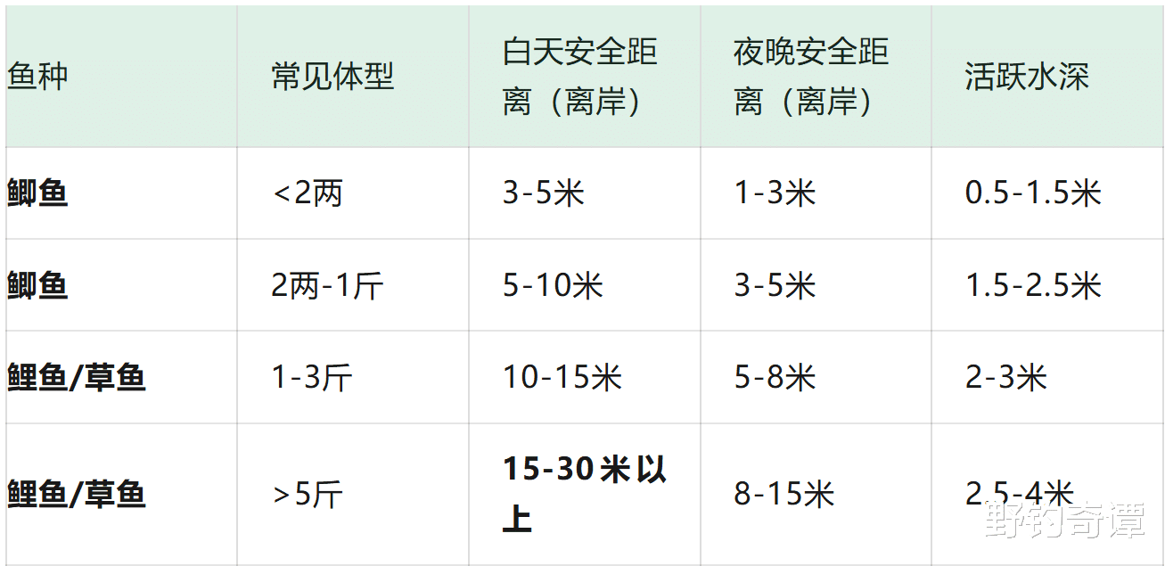 大型鱼(如1斤以上的鲫鱼、5斤以上的鲤鱼、草鱼):这些可都是“老江湖”了。它们的“安全距离”远超我们想象。在白天,它们很少会进入离岸15米以内的区域,甚至更远。