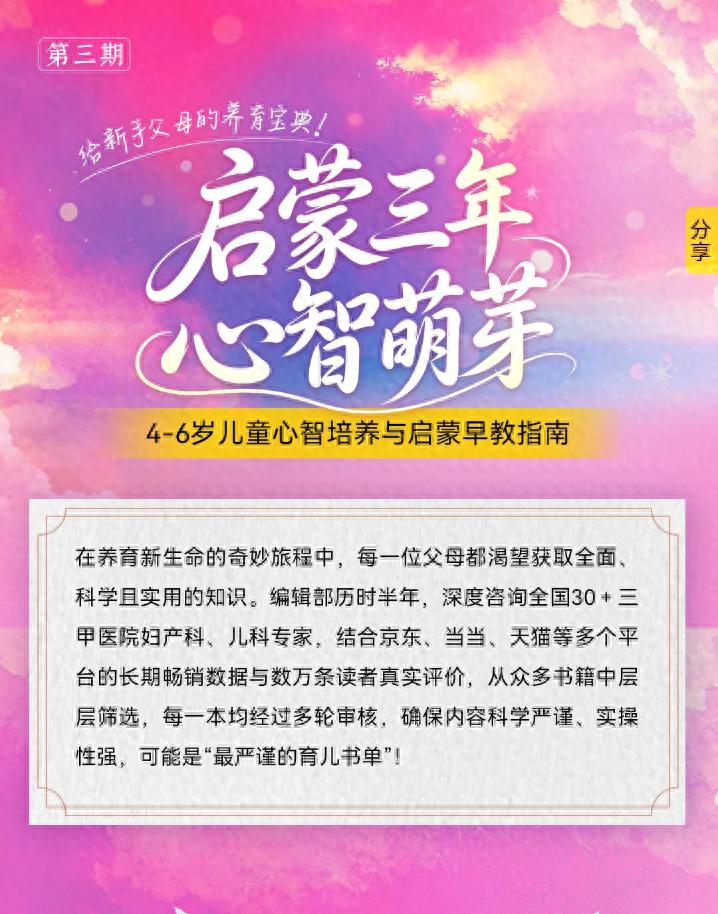 最近,我正在找相关书籍来学习一下如何管教这个阶段的孩子,结果在华为阅读中发现了一份“育儿书单”,据说这是华为阅读联合三甲医院和大数据筛选出的,而第三期“启蒙三年,心智萌芽”书单中的几本书,对我来说简直就是及时雨!