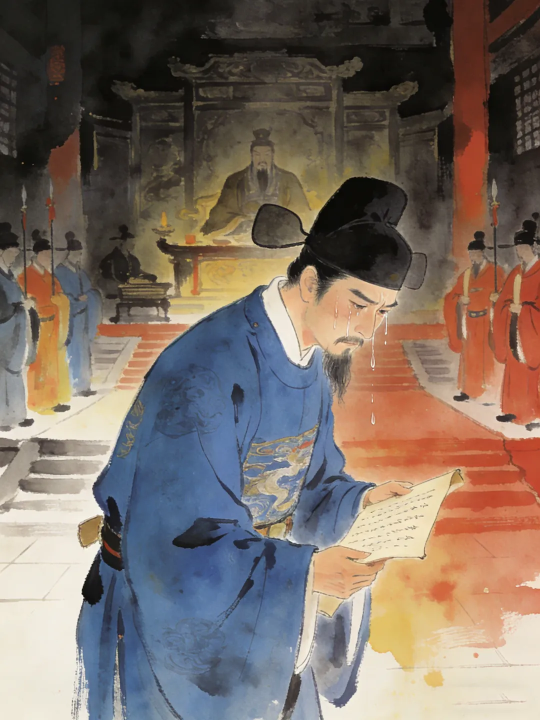 点评标签:忠心耿耿却遭猜忌,赐死尽忠,鸟尽弓藏的悲惨写照!