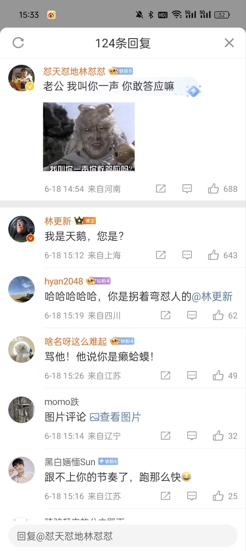 林更新又开始跟粉丝互怼了!!!可以说是,林更新的评论区 ,骂骂咧咧来,支支吾吾走。