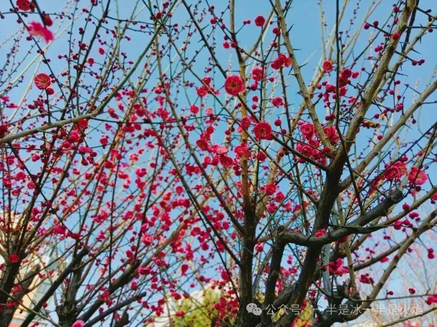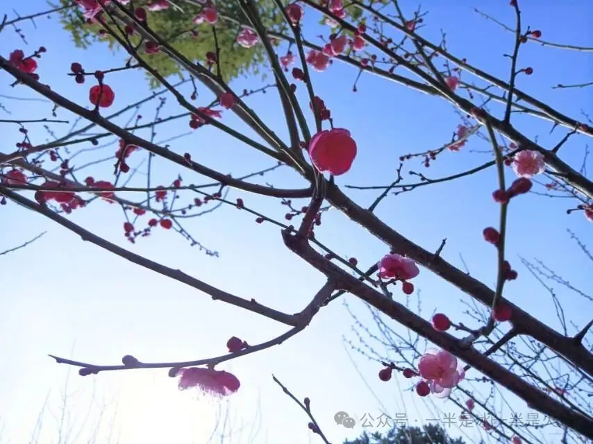 拍了红梅,阳光好,梅花满枝,也花团锦簇,也清雅淡远。果然花如其名。